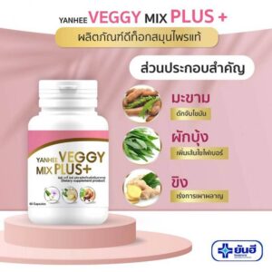 Yanhee Veggy Mix Plus+ هو مكمل غذائي متطور لدعم صحة الجهاز الهضمي، تنظيف القولون، إزالة السموم، والمساهمة في فقدان الوزن