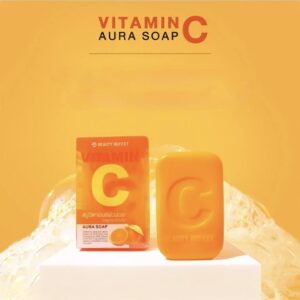 صابون Beauty Buffet Vitamin C Aura Soap بحجم 100 غرام ينظف البشرة بعمق ويمنحها إشراقة طبيعية. يحتوي على فيتامين C