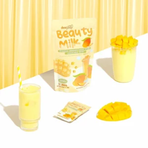 مشروب Beauty Milk من Dear Face بنكهة المانجو 50,000 ملغ هو مشروب صحي وجمالي غني بمضادات الأكسدة، مصمم لدعم الصحة