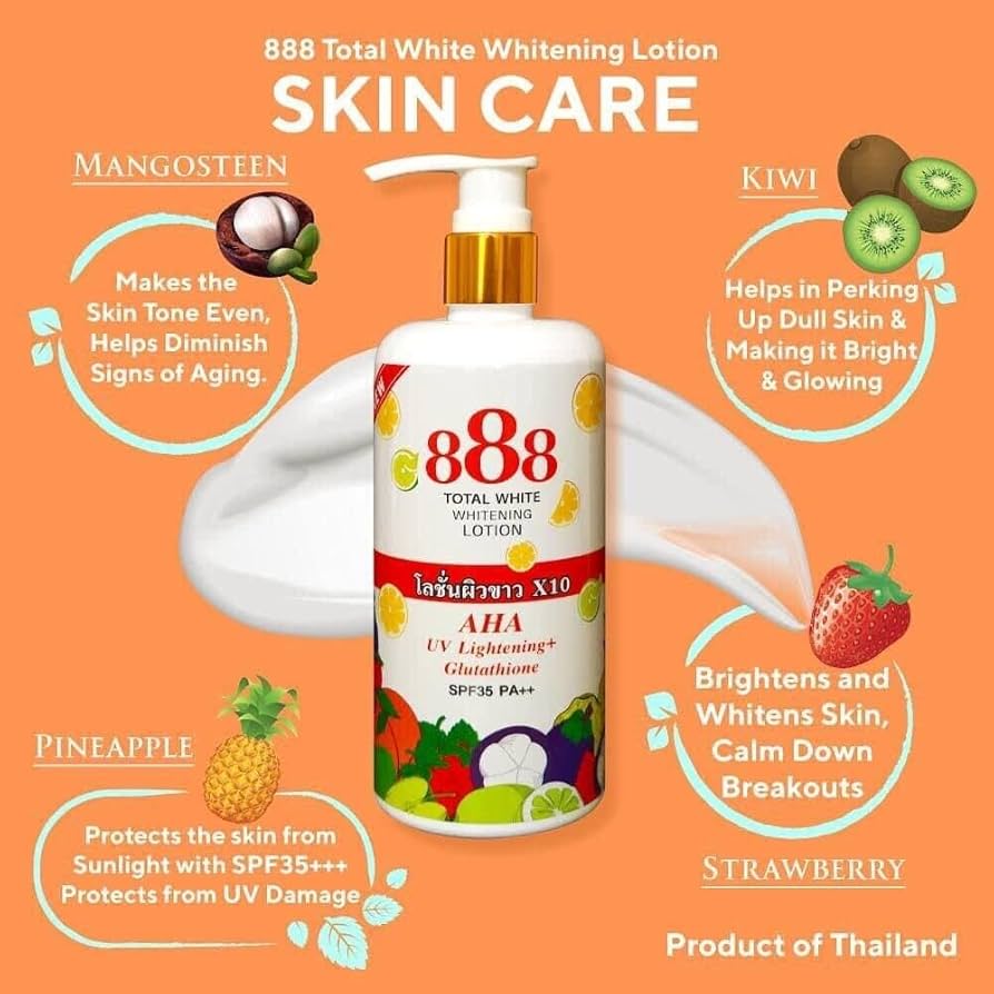 Offrez à votre peau un soin complet avec 888 Total White Whitening Lotion pour une peau éclatante et radieuse.