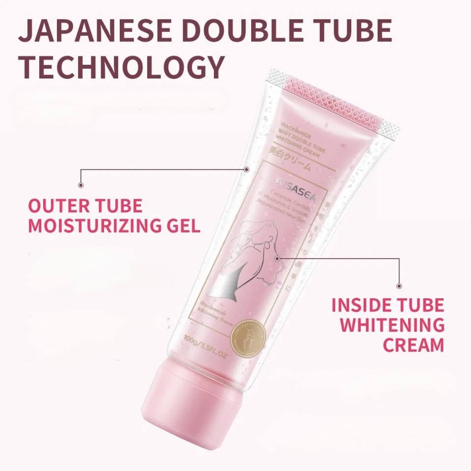 – Crème blanchissante pour le corps Aisasea à la niacinamide en deux tubes.