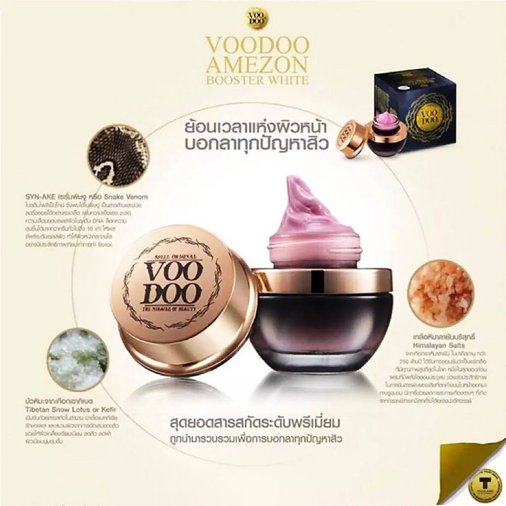قناع الوجه Voodoo Amezon Booster White Snake Venom يجمع بين خصائص القناع، الكريم، والسيروم في منتج واحد فاخر، ليقدم حلاً متكاملًا لمحاربة علامات تقدم السن. يعتمد على تقنية SYN-AKE الحائزة على الجوائز، وهو خيار مفضل بين المستهلكين ويكتسب شهرة سريعة في الأسواق الأمريكية والأوروبية.