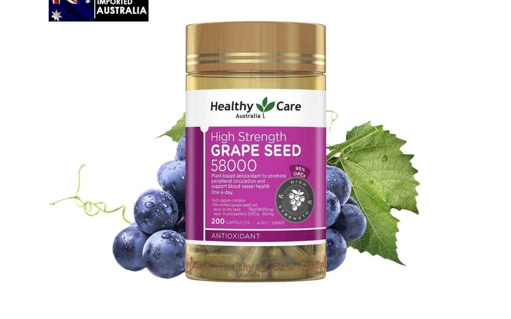 **مستخلص بذور العنب الأسترالي Healthy Care Grape Seed 58000 mg – 200 كبسولة**