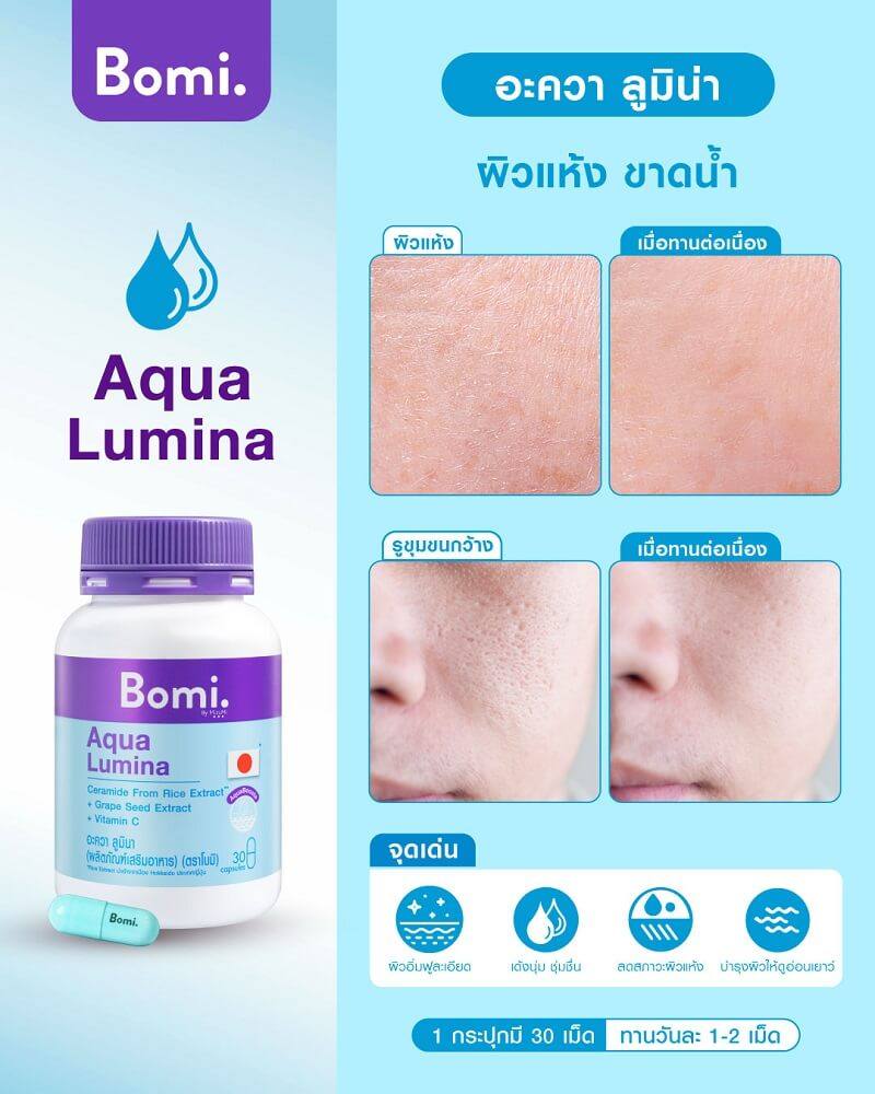 مركب Bomi Aqua Lumina 30 كبسولة صُمم خصيصاً للبشرة الجافة لترطيبها بعمق وتحسين مرونتها. كل كبسولة تحتوي على مكونات مختارة بعناية لتغذية الجلد ومنحه النعومة والحيوية.