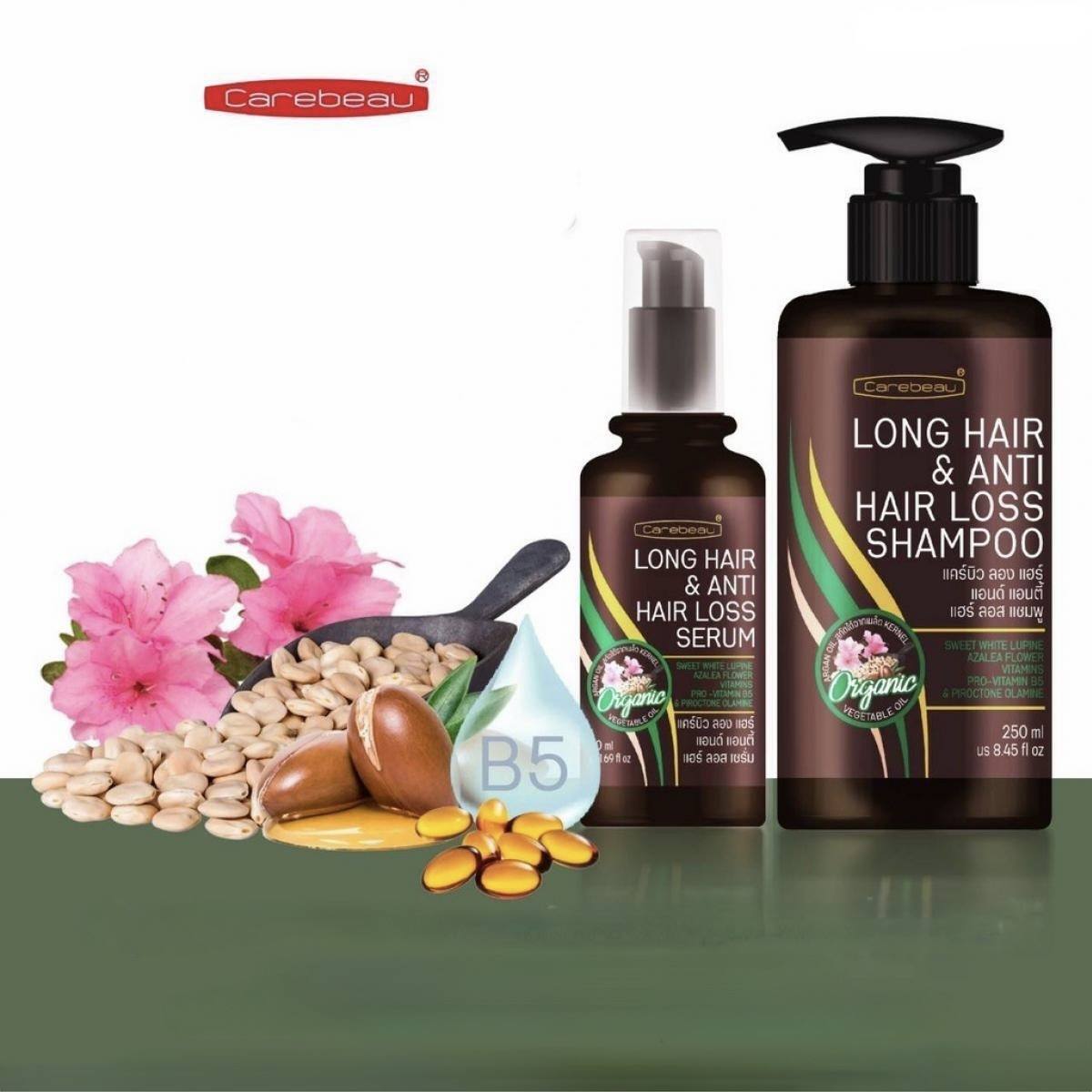 شامبو Carebeau للشعر الطويل ومكافحة تساقط الشعر يحتوي على مستخلص اللوبين الأبيض الذي يحفز توصيل العناصر الغذائية والأكسجين إلى فروة الرأس، ويقوي الشعر ويزيد كثافته بفضل البروتين المهدرج.