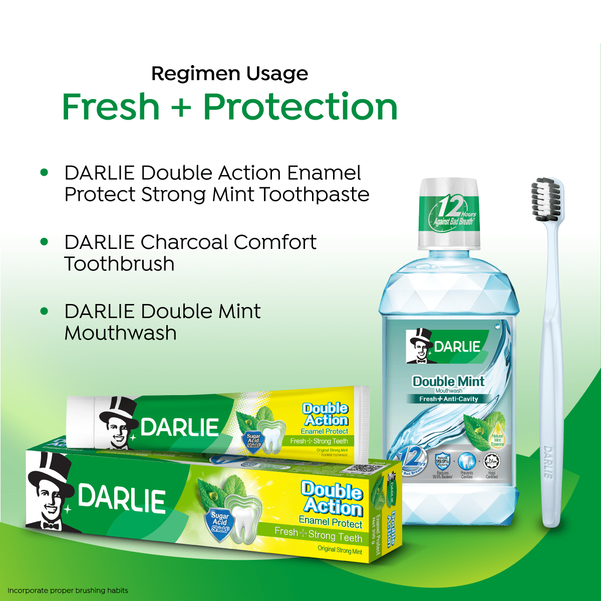 يوفر معجون دارلي دبل أكشن لحماية المينا 140 غرام عناية متكاملة لصحة الفم والأسنان. صُمم بتركيبة فعالة تحتوي على الفلورايد الذي يساعد على تقوية مينا الأسنان وحمايتها من العوامل المسببة للتآكل.