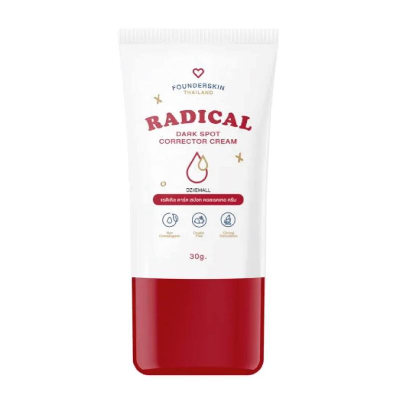 كريم Founder Skin Radical Dark Spot Corrector بحجم 30 غرام هو علاج فعال لتفتيح البقع الداكنة وتوحيد لون البشرة. يحتوي على مستخلص Symwhite377 المستورد من ألمانيا، الذي يعمل بسرعة لتقليل التصبغات والبقع البنية بفعالية أعلى 22 مرة من حمض الكوجيك. كما يحتوي على مستخلص ليمون كافيار أسترالي (AHA طبيعي) لتسريع تفتيح البشرة ومنحها إشراقة طبيعية. غني بزيت الورد البري وفيتامينات A وC لتغذية البشرة وتقليل ظهور البقع الداكنة، مع امتصاص سريع وملمس غير دهني.