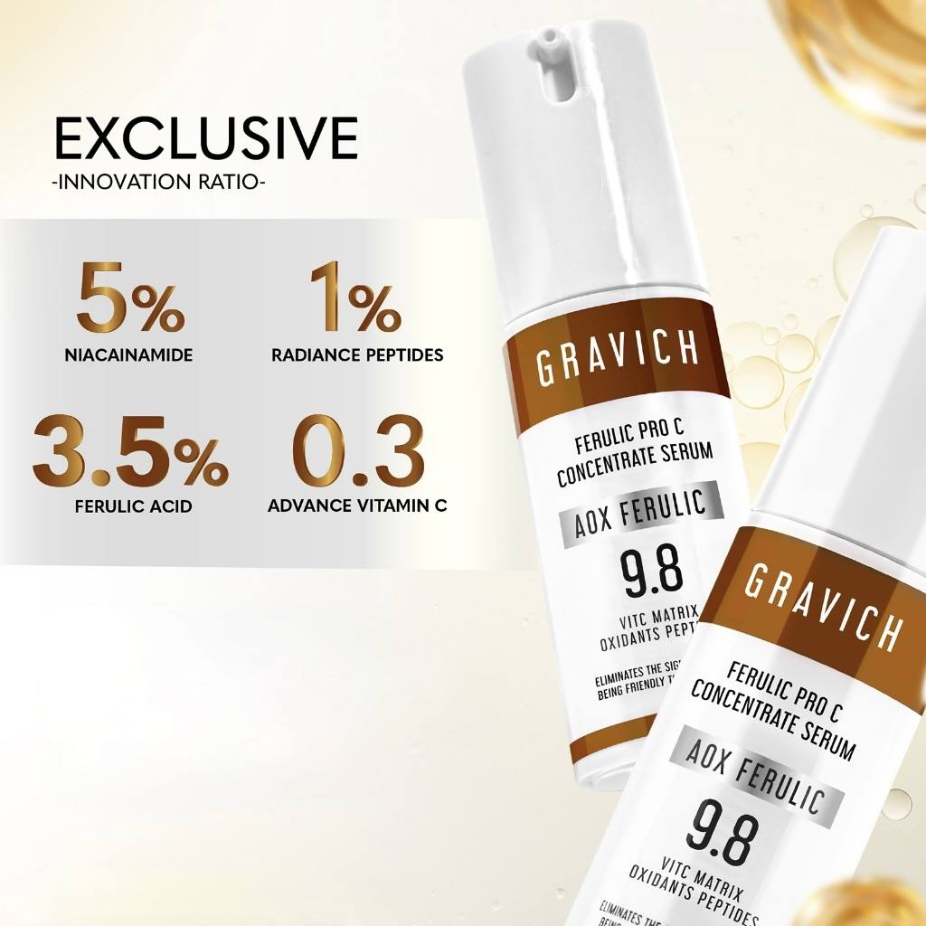 Mode d’emploi : Appliquez régulièrement le Sérum Concentré Gravic™ Ferulic Pro C sur votre visage et votre cou, matin et soir. Avant les autres étapes de maintenance