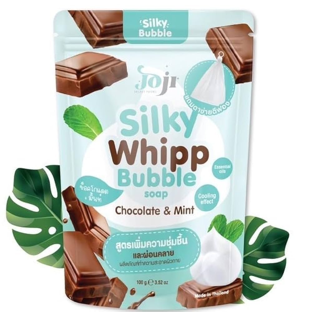 صابون Joji Silky Whipp Bubble Soap Chocolate and Mint هو منتج فاخر للعناية بالبشرة يجمع بين خصائص التنظيف الفعّال والإحساس المنعش. يتميز بتركيبة غنية تمنح البشرة رغوة كريمية ناعمة تساعد على إزالة الشوائب والزيوت الزائدة بلطف دون التسبب في جفافها.