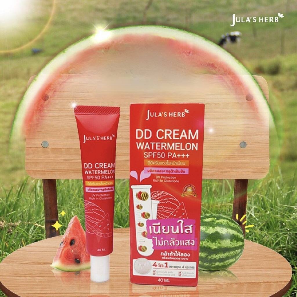 كريم البطيخ DD من Jula’s Herb هو كريم متعدد الوظائف صُمم لمنح البشرة ملمساً ناعماً ولوناً متجانساً. يحتوي الكريم على مستخلص البطيخ وتركيبة غنية بالجلوتاثيون، ويقدم حماية فعالة للبشرة مع SPF50 ضد أشعة UVA وUVB.