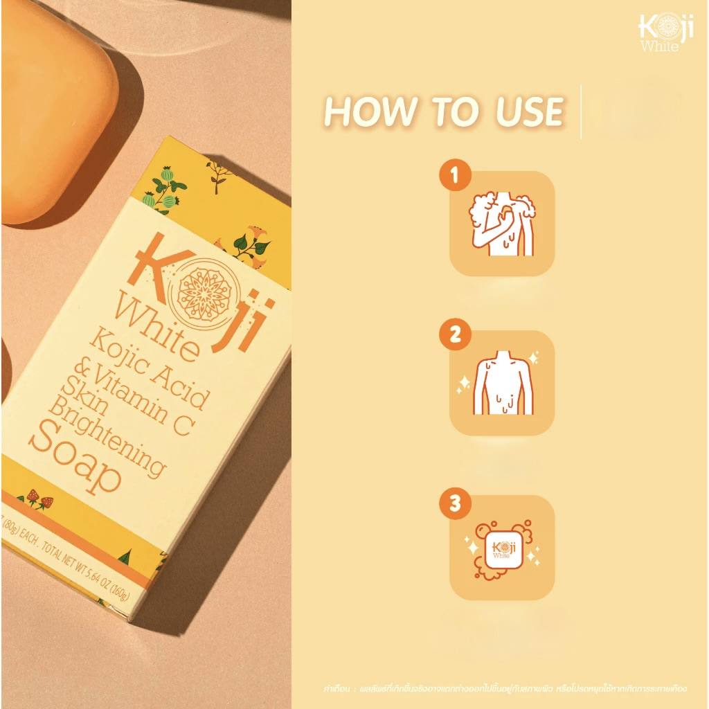 Comment utiliser : Utilisez le savon à l’acide kojique sur le visage et le corps, particulièrement sur les zones sombres. Rincez à l’eau claire.