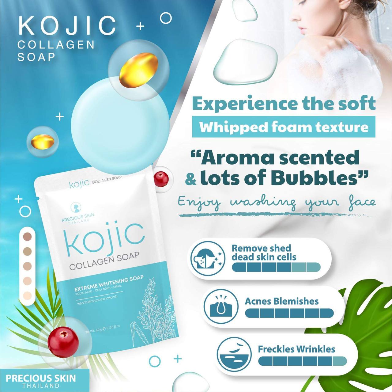 Découvrez le savon KOJIC COLLAGEN de Precious Skin Thailand, un produit révolutionnaire pour un effet blanchissant extrême ! Avec un mélange puissant d’acide kojique, de collagène et de sécrétion d’escargot, ce savon offre un éclaircissement intense tout en étant doux pour la peau. Profitez d’un nettoyage en profondeur qui élimine complètement les impuretés des pores, révélant une peau plus douce, plus lisse et plus éclatante. En prime, chaque savon est livré avec un filet moussant gratuit pour une mousse douce et apaisante.