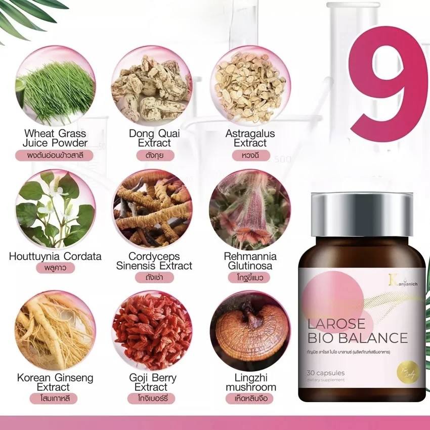 مكمل Larose Bio Balance يساعد على إعادة توازن الدورة الشهرية وتحسين صحة البشرة. يقلل من الشوائب والبقع، يؤخر علامات الشيخوخة، ويمنحك بشرة مشرقة ومظهراً طبيعياً وجمالاً يومياً مع شعور بالرفاهية.