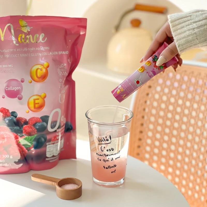 Manee Gluta Collagen 30 sachets هو مكمل غذائي يحتوي على الجلوتاثيون والكولاجين، مصمم لدعم صحة البشرة وتعزيز إشراقتها من الداخل للحصول على مظهر أكثر نضارة وحيوية.
