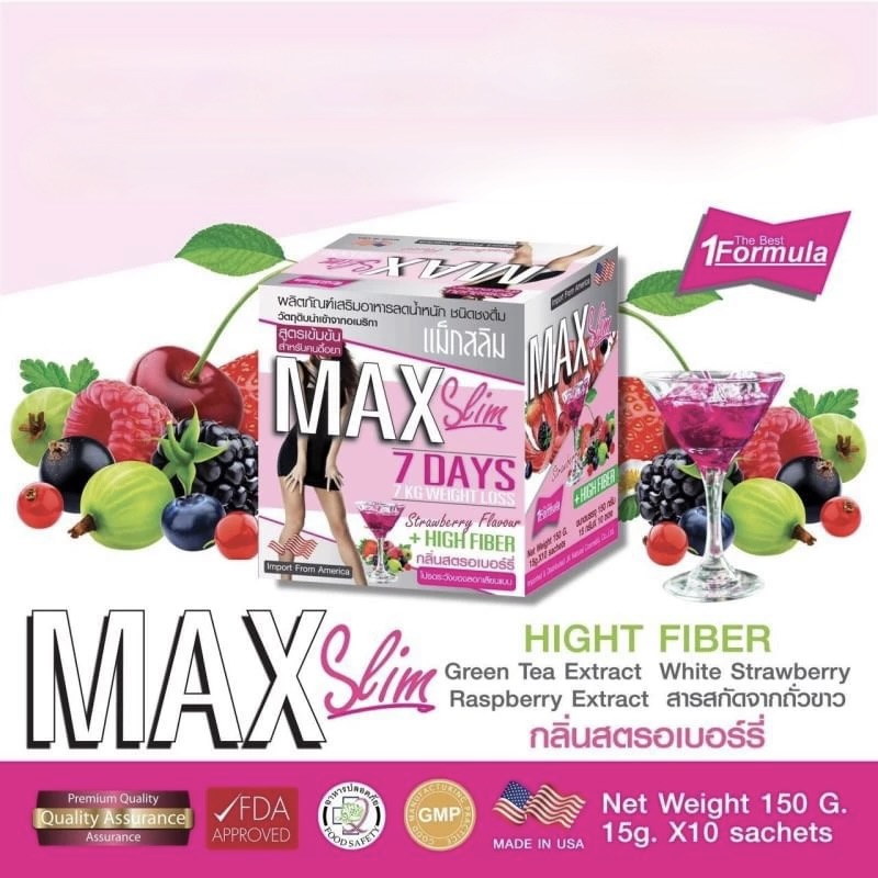 MAX Slim 7 DAYS High Fiber هو مشروب مكمل غذائي عالي الألياف مصمم خصيصاً للأشخاص الذين يواجهون صعوبة في فقدان الوزن. تركيبته المركزة تساعد على تقليل الدهون في جميع مناطق الجسم مع توفير نكهة فراولة لذيذة.