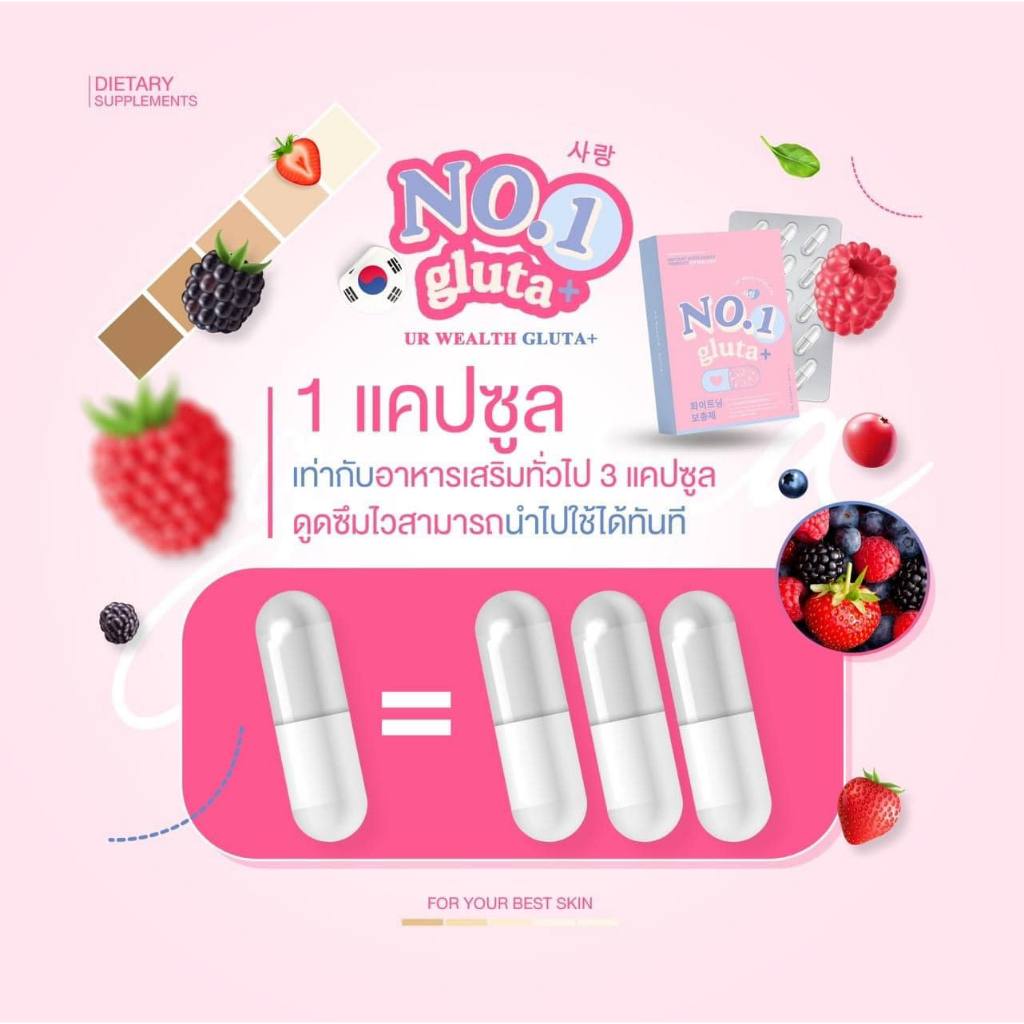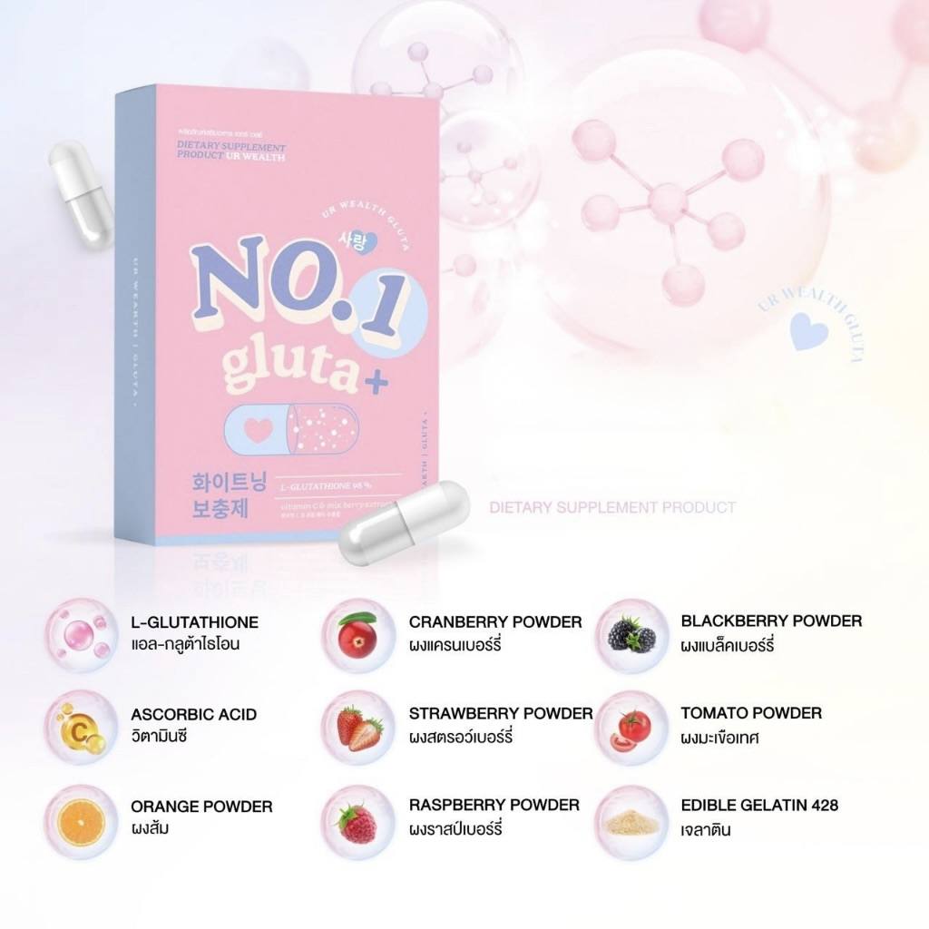 No.1 GLUTA Plus هو مكمل غذائي يساهم في تحسين صحة البشرة ومنحها إشراقة طبيعية وملمس ناعم.