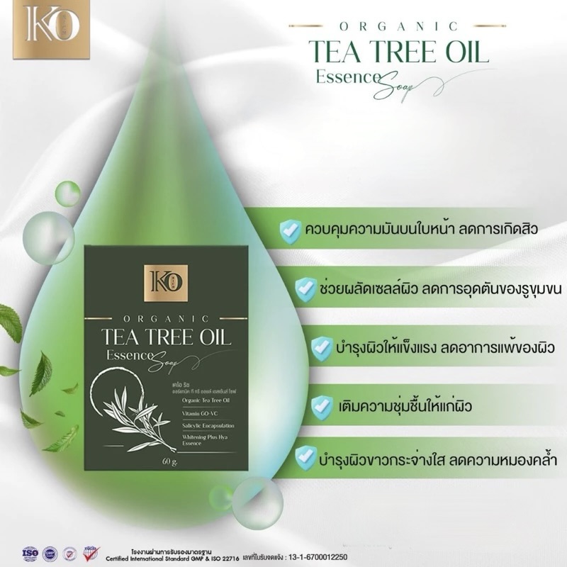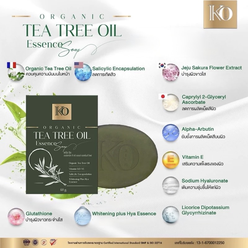 صابون Organic Tea Tree Soap Ko Rich 60غ هو صابون عضوي طبيعي غني بمستخلصات شجرة الشاي، مصمم لتنظيف البشرة بعمق بلطف مع تعزيز إشراقتها الطبيعية وتقوية حاجزها الواقي.