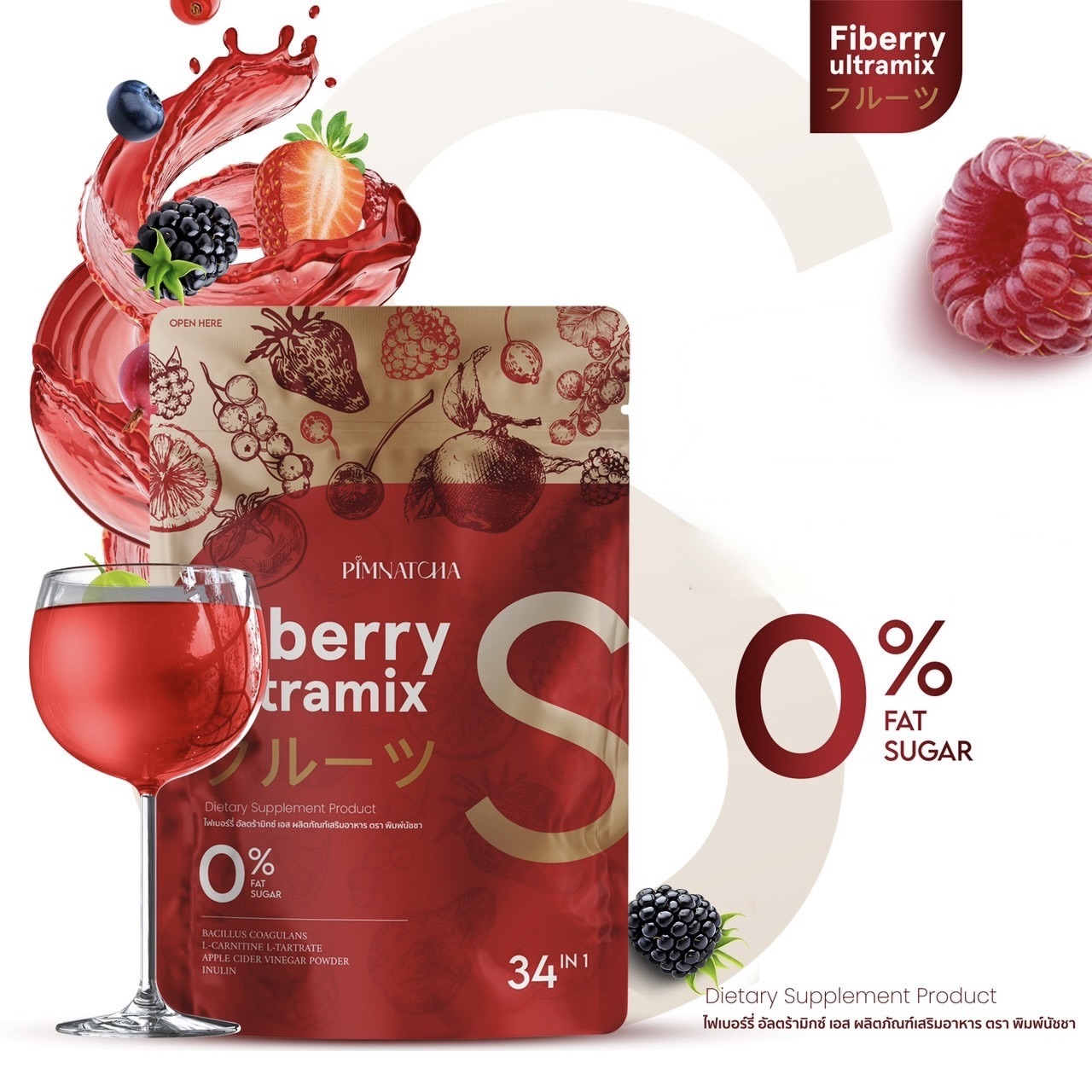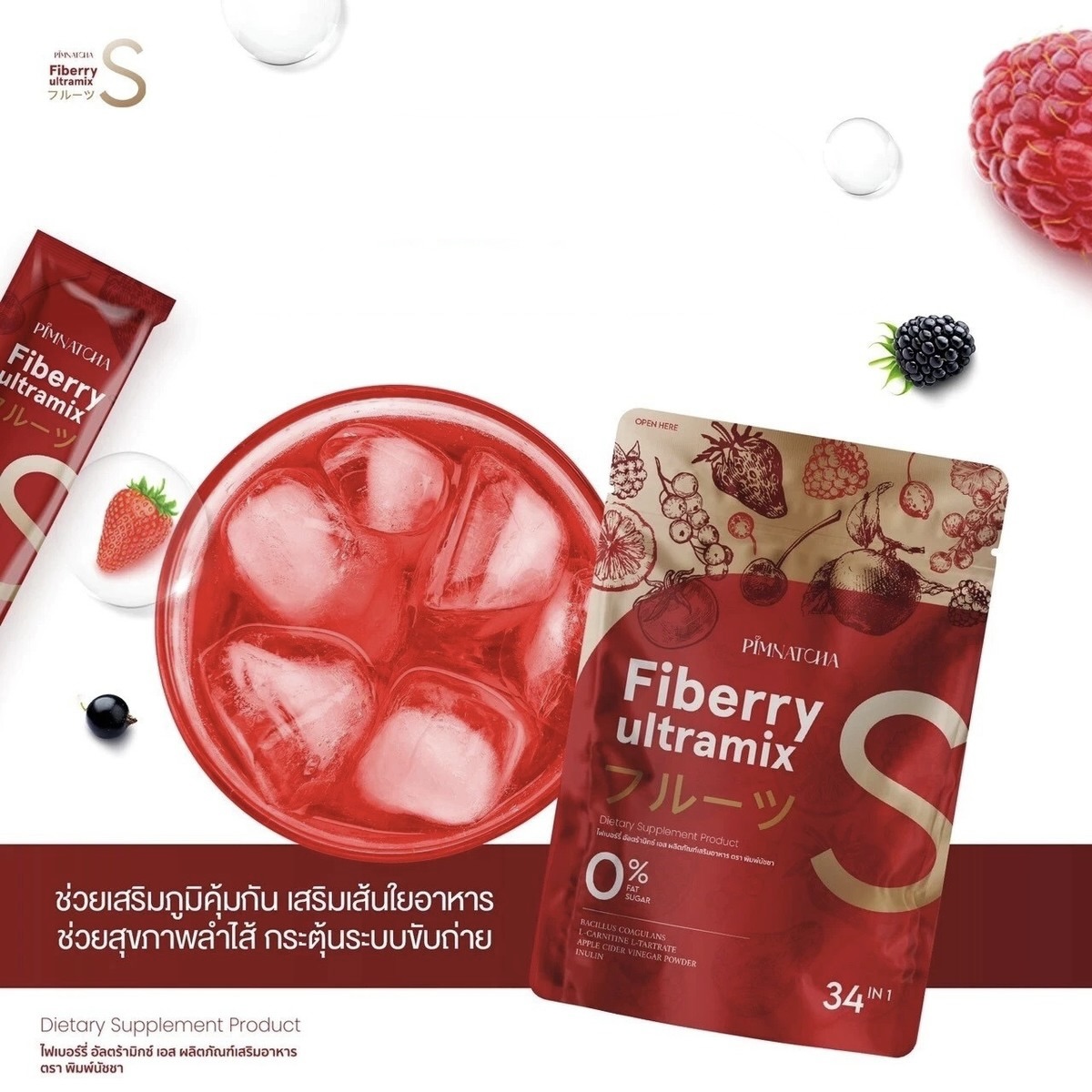 Pimnatcha Fiberry – Complément de fibres saveur fruits rouges