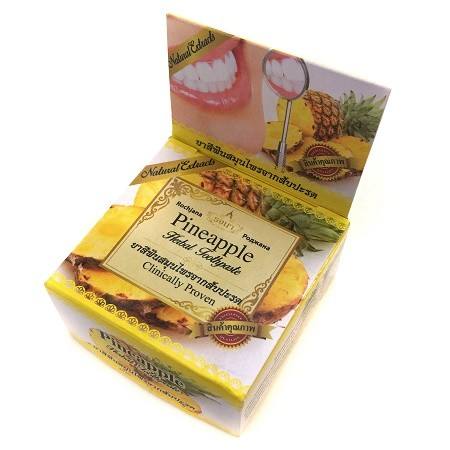 يُعتبر معجون الأسنان المبيّض Thai Rochjana من أشهر معاجين الأسنان الطبيعية في تايلاند، ويتميز بتركيبة فعّالة تعتمد على زيت القرنفل ومستخلصات نباتية طبيعية، بما في ذلك الأناناس. تم تطويره خصيصًا لتبييض الأسنان والعناية الشاملة بصحة الفم واللثة، مع الحفاظ على سلامة مينا الأسنان.