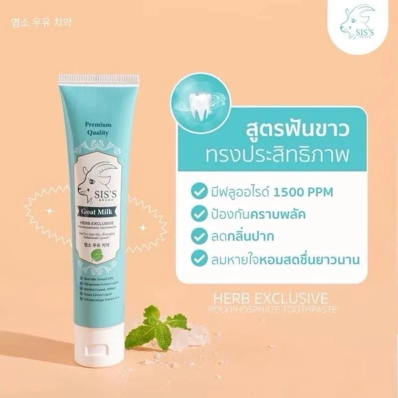 معجون أسنان بحليب الماعز SIS’S Goat Whitening Milk Toothpaste هو معجون يساعد على تبييض الأسنان وتنظيفها مع الحفاظ على صحة اللثة. يحتوي هذا معجون أسنان بحليب الماعز على تركيبة فعالة تدعم نظافة الفم وحماية الأسنان.