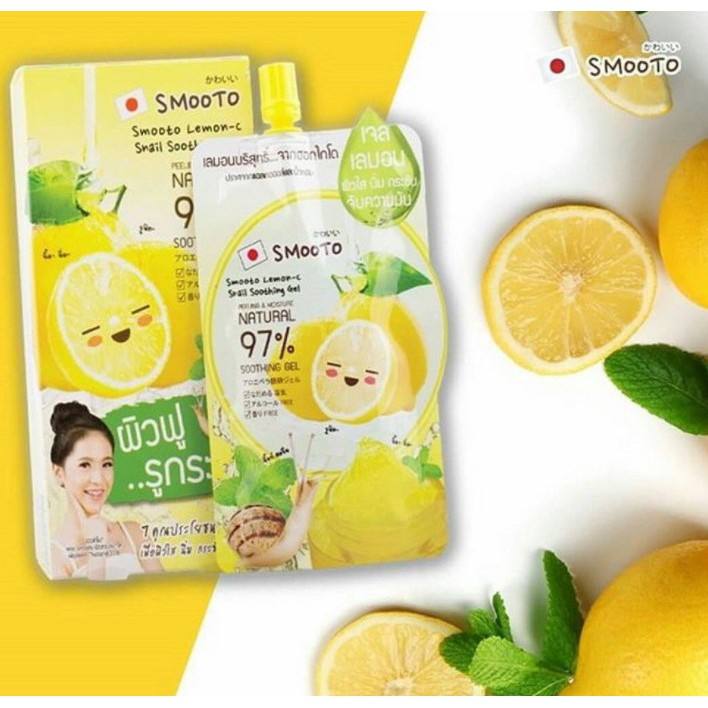 Smooto Lemon-C Snail Soothing Gel 50 gr هو جل مهدئ غني بالليمون النقي من هوكايدو ومجموعة من المستخلصات الطبيعية، يمنح البشرة إشراقة واضحة دون ترك أي أثر دهني. يحتوي الجل على مخاط الحلزون الذي يساعد على تحسين مرونة وقوة البشرة، مع تقليص حجم المسام لمنح بشرة ناعمة ومشدودة.