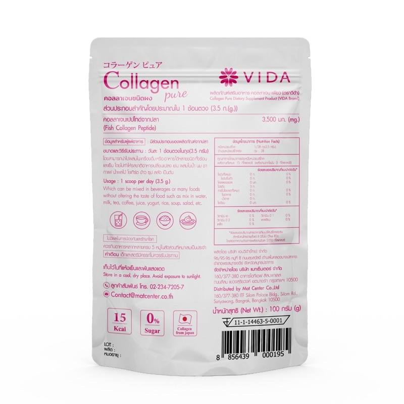 Vida Collagen Pure هو مكمل كولاجين عالي الجودة 100% مستخلص من الأسماك بوزن جزيئي منخفض، ما يجعله سهل الامتصاص والاستخدام من قبل الجسم. هذا الكولاجين النقي يدعم صحة البشرة، الشعر، الأظافر والمفاصل بشكل فعال، ويساهم في الحفاظ على مرونتها ونضارتها.