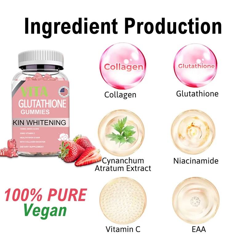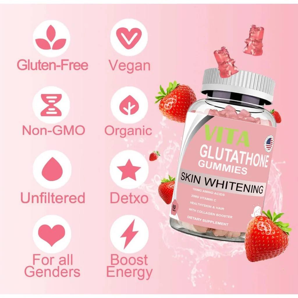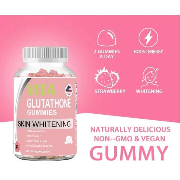 VITA Glutathione Gummy هو مكمل غذائي على شكل علكات يحتوي على الغلوتاثيون لدعم صحة البشرة، تفتيح لونها، وتحسين إشراقتها الطبيعية. يساعد الغلوتاثيون على دعم إزالة السموم من الجسم، حماية الخلايا من الإجهاد التأكسدي، وتعزيز الصحة العامة بطريقة طبيعية وسهلة الاستخدام.