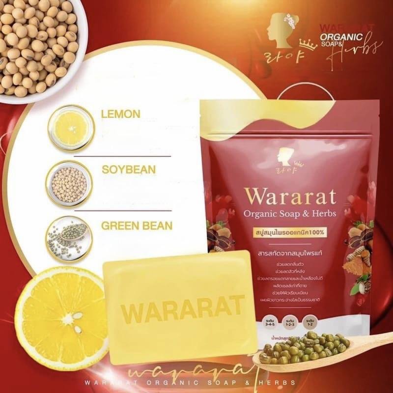 Le savon Wararat, enrichi en extraits de soja, de haricot mungo, de ginseng, de curcuma, de noix de coco, d’algues rouges et de vitamines C et E, exfolie en douceur les cellules mortes pour révéler une peau saine et éclatante. Ce savon nourrit et revitalise la peau grâce à ses extraits végétaux concentrés, laissant votre peau lisse, naturellement blanche et lumineuse.
