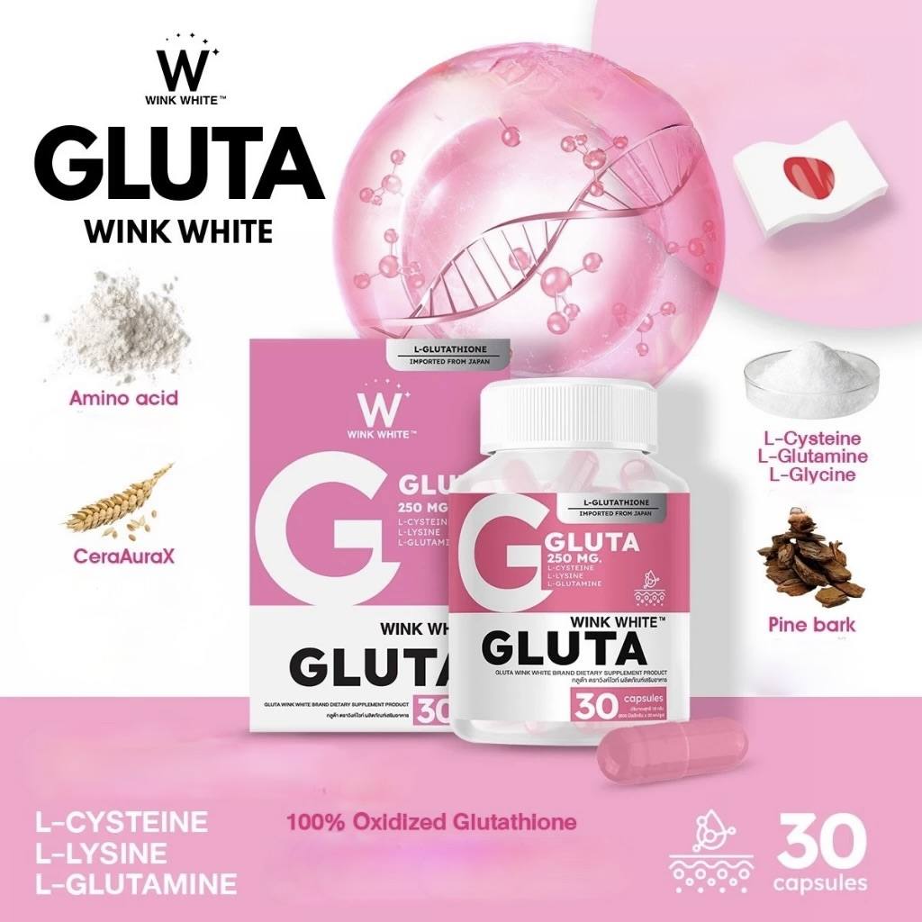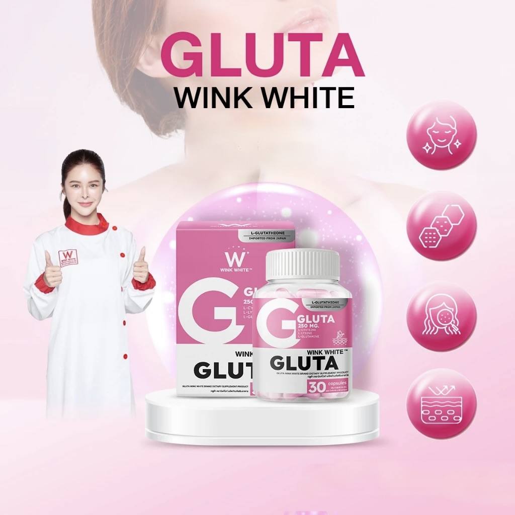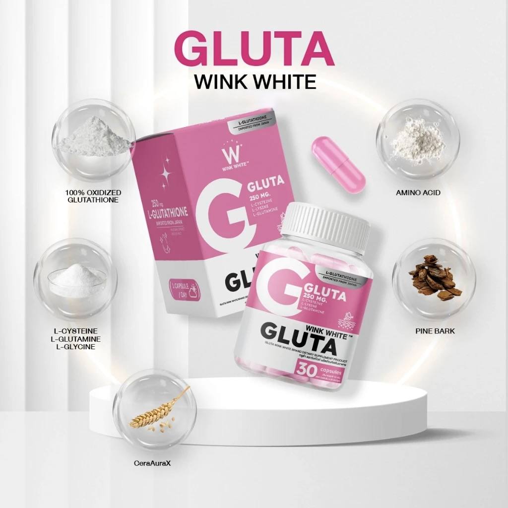 Découvrez les bienfaits de WINK WHITE GLUTA, la solution idéale pour une peau lumineuse, douce et uniforme.