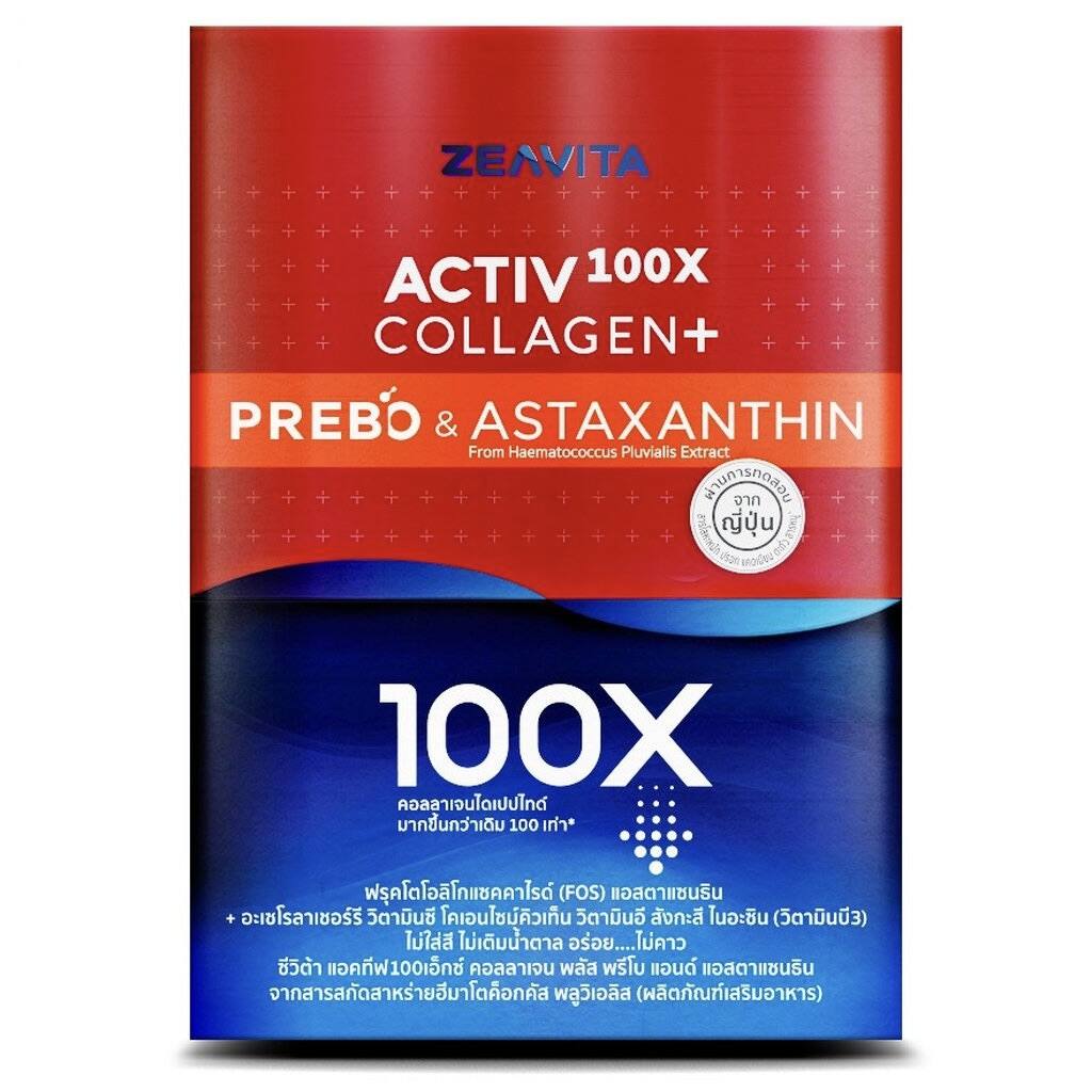 Active100X Collagène Plus Prebo et Astaxanthine issus d’extrait d’algues Haematococcus pluvialis.